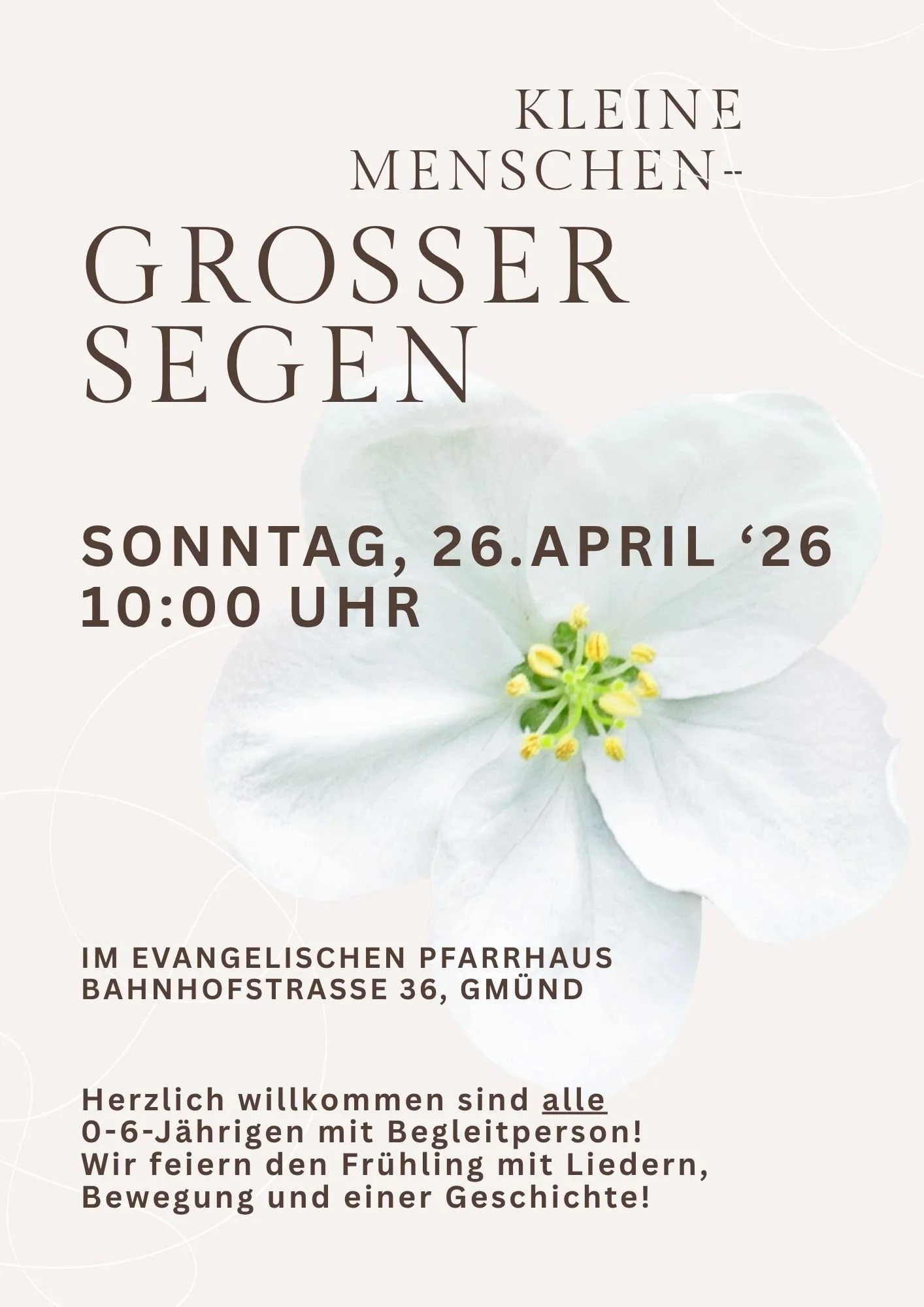 Herzliche Einladung zu unserem Krabbelgottesdienst am Sonntag, 26. April um 10:00 Uhr im evangelischen Pfarrhaus (Bahnhofstraße 36, Gmünd).