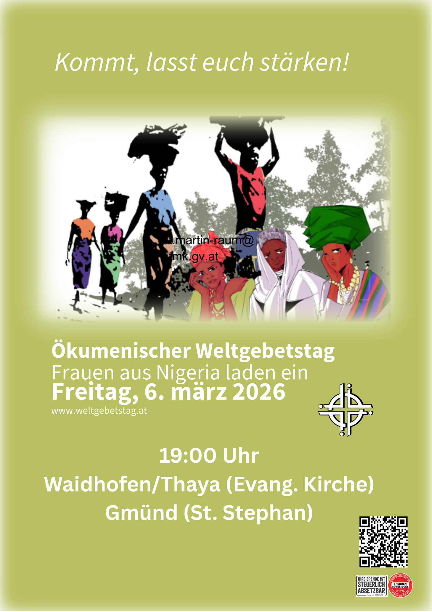 Zurück zu allen Events Weltgebetstag der Frauen Samstag, 14. Februar 2026 19:30 Sonntag, 8. März 2026 20:30 Google Kalender ICS